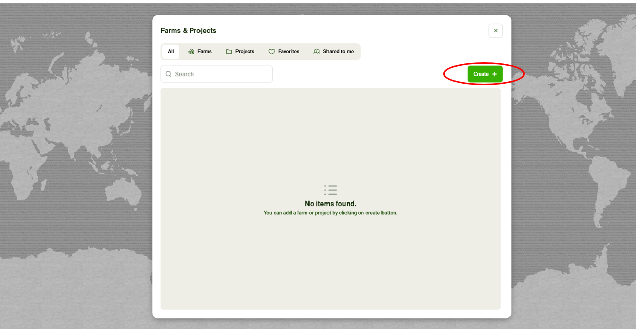 Start by selecting the ‘Create’ button from the Home page or ‘Farms & Project’ page.