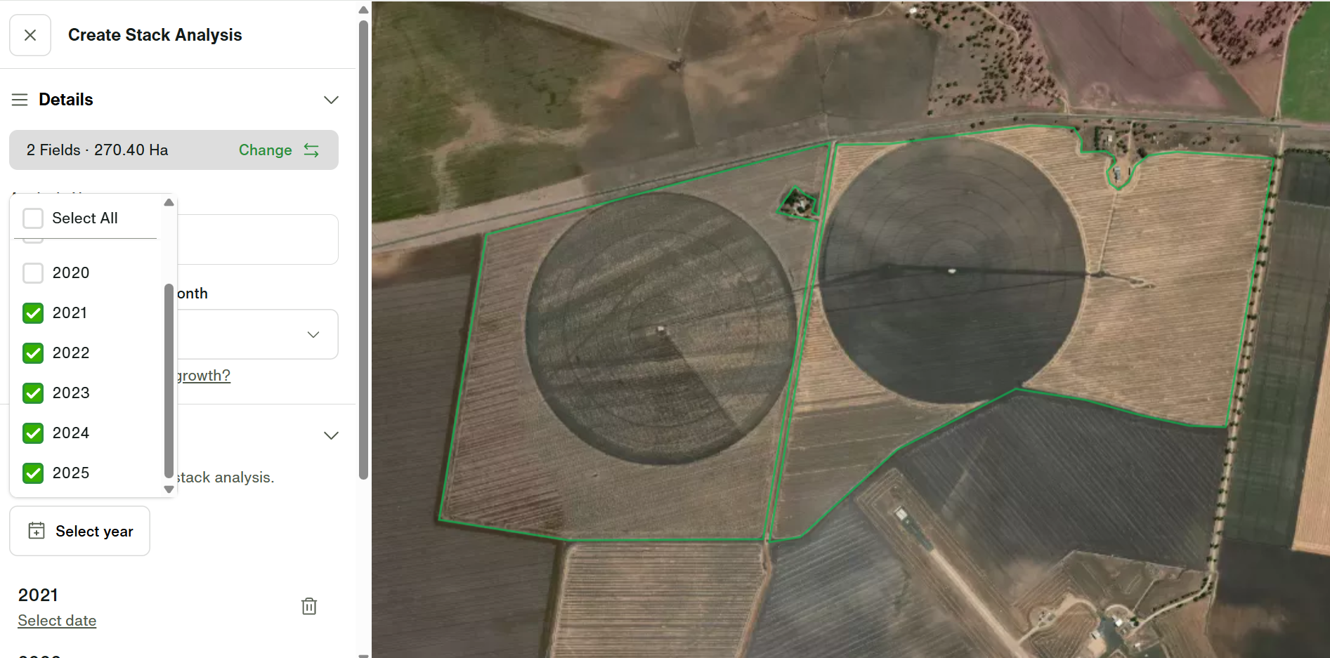 STACK Analysis allows you to use imagery across multiple years to create a map of your fields. To learn more about STACK and when and why to use it, see