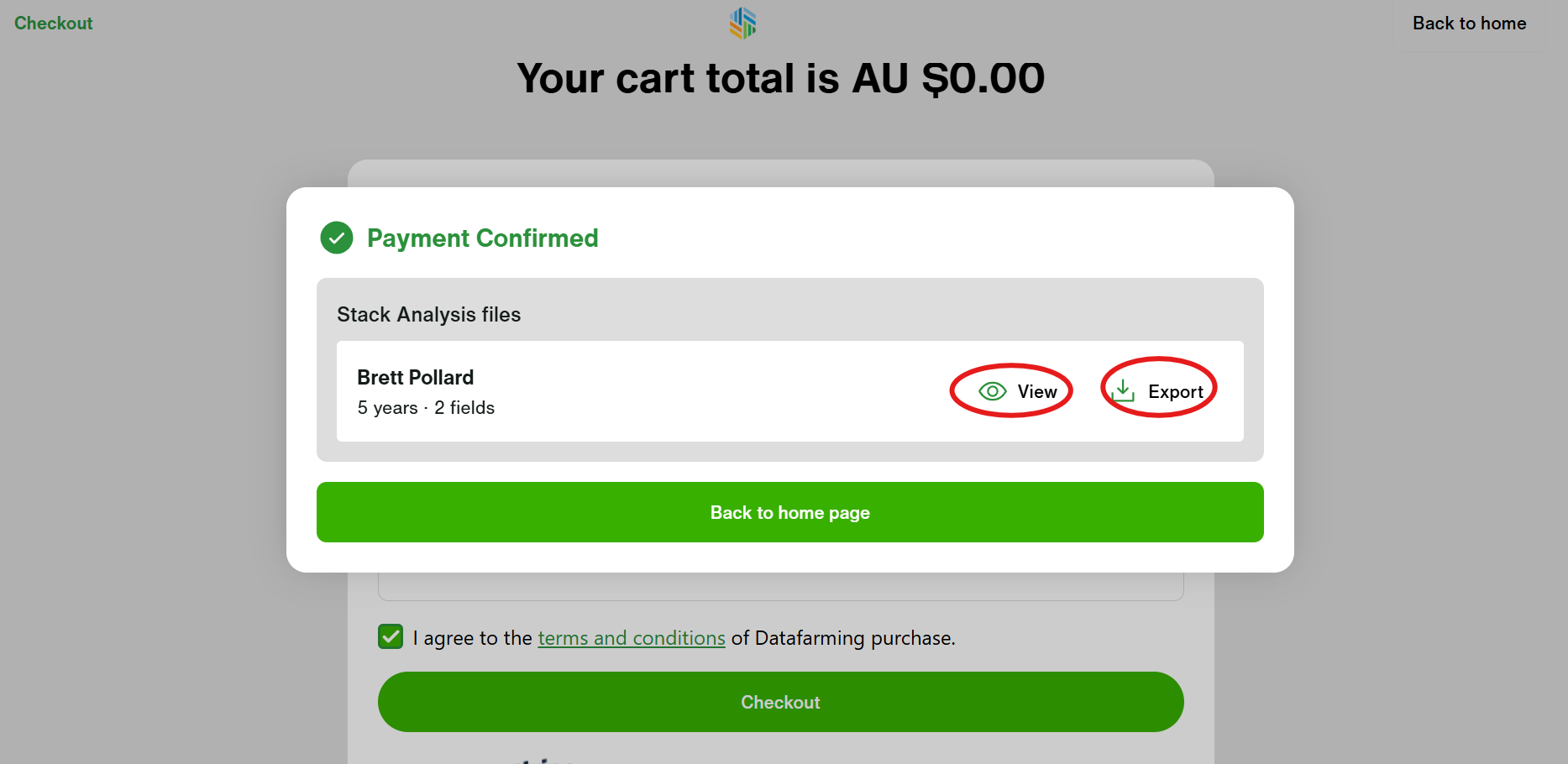 For Basic and Advanced users, once the payment is complete, the STACK will process and you will have the option to View or Export.
