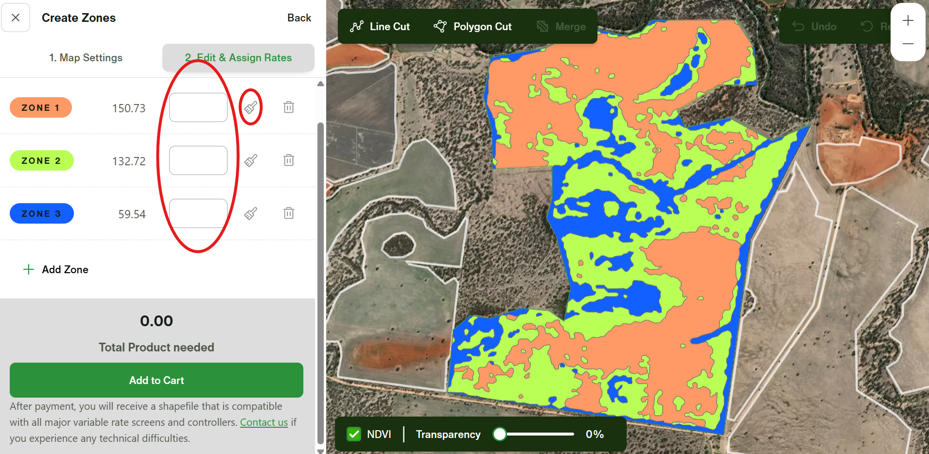 Once you have selected the zones and output scale, the image will process and you will be able to view your prescription map.