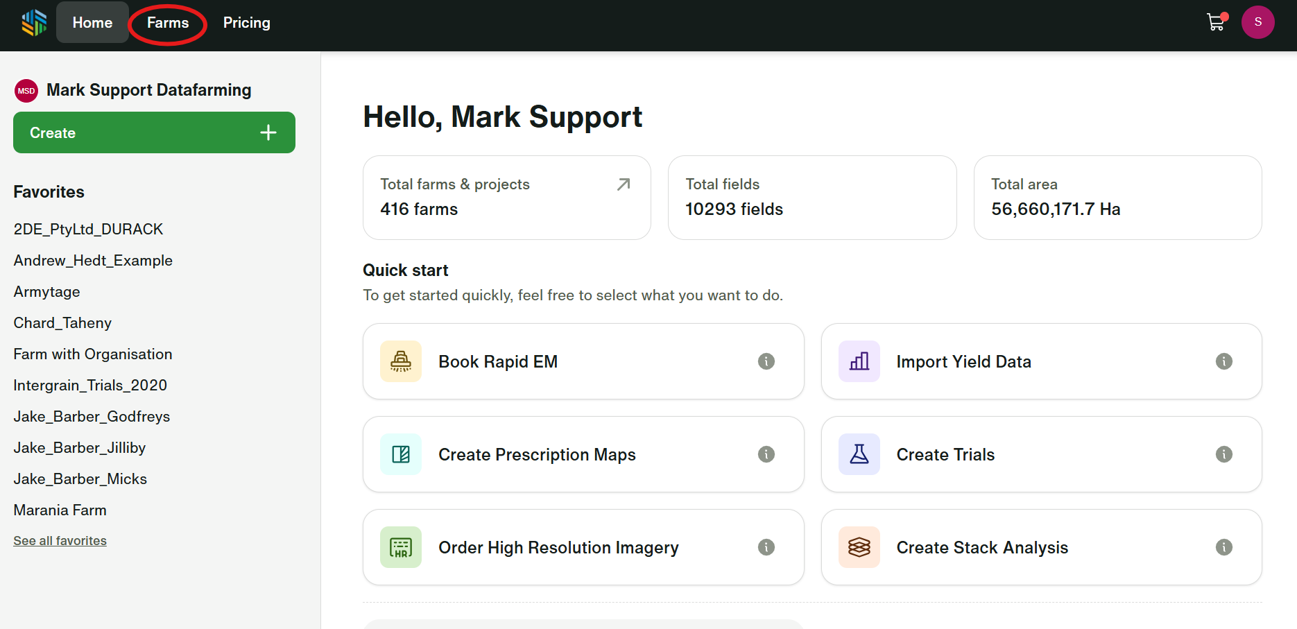 To View NDVI Imagery, you will need to have a Farm and Fields created.